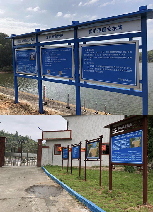 廣東省河湖及水利工程河湖管理范圍及水利工程管理與保護(hù)范圍劃界工作這2年已大力開展,我司有幸成為其中的一員,為廣東省河湖及水利工程盡一點(diǎn)綿薄之力。我司著力于河湖水庫(kù)工程的標(biāo)準(zhǔn)化建設(shè)及水庫(kù)標(biāo)識(shí)標(biāo)牌項(xiàng)目產(chǎn)品的生產(chǎn)、制作、及施工安裝。2020年我司前后完成了珠海市水庫(kù)標(biāo)識(shí)標(biāo)牌項(xiàng)目(珠海市香洲區(qū)、高新區(qū)、高欄港區(qū)、萬山區(qū)、水控集團(tuán))管轄范圍內(nèi)的水庫(kù)標(biāo)識(shí)牌項(xiàng)目;韶關(guān)市河湖水庫(kù)標(biāo)識(shí)牌項(xiàng)目;清遠(yuǎn)市河湖水庫(kù)標(biāo)識(shí)標(biāo)牌項(xiàng)目;陽江市河湖水庫(kù)標(biāo)識(shí)標(biāo)牌項(xiàng)目;江門市河湖水庫(kù)標(biāo)識(shí)標(biāo)牌項(xiàng)目;廣州市河湖水庫(kù)標(biāo)識(shí)標(biāo)牌項(xiàng)目;佛山市河湖水庫(kù)標(biāo)識(shí)標(biāo)牌項(xiàng)目;肇慶市河湖水庫(kù)標(biāo)識(shí)標(biāo)牌項(xiàng)目;惠州市河湖水庫(kù)標(biāo)識(shí)標(biāo)牌項(xiàng)目;河源市河湖水庫(kù)標(biāo)識(shí)標(biāo)牌項(xiàng)目;深圳市河湖水庫(kù)標(biāo)識(shí)標(biāo)牌項(xiàng)目;以及汕頭揭陽地區(qū)的河湖水庫(kù)標(biāo)識(shí)標(biāo)牌項(xiàng)目。