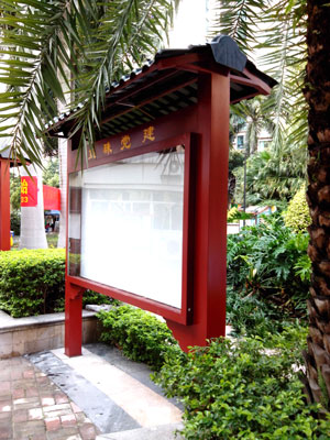 跟每個行業(yè)一樣,力求創(chuàng)新,追求完美,也是標識行業(yè)的特點?,F(xiàn)在的標識牌很多都固定材料及工藝,不能與自然環(huán)境達到和諧統(tǒng)一,為此,很多設計和技術人員不斷研究創(chuàng)新,將金屬標識牌與仿古結合。仿古的宣傳欄由此而來。